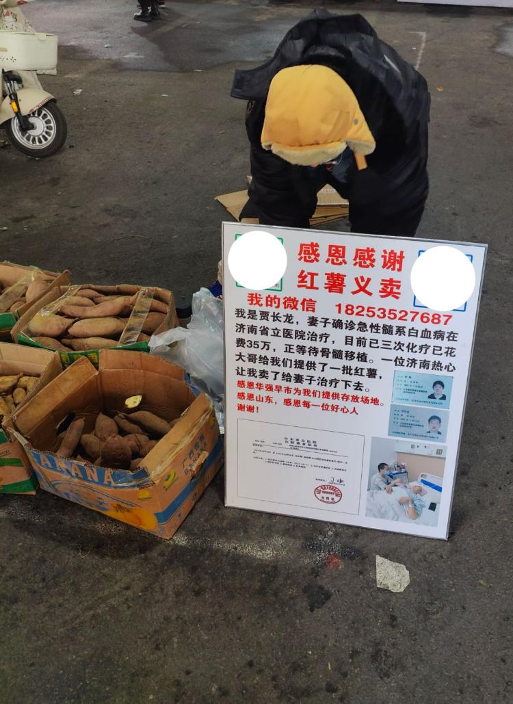 大众网记者魏俊毅、实习生孟晓楠济南报道。近日,济南市华强早市出现了一个特色摊位。烟台居民贾长龙在这里卖红薯,为患有白血病的妻子筹集治疗费用。这批红薯共计10万公斤,是济南市莱芜区一位好心弟兄匿名捐赠的。她丈夫的病情暂缓,急需资金进行移植手术。据了解,贾昌龙妻子李然的症状已有所缓解,但应尽快进行骨髓移植,以降低复发风险。 “如果你准备好了钱,就应该尽快进行移植。如果不进行移植,复发的可能性就很大。”贾昌龙说。 “我们现在正在努力筹集资金。”此前,李然已经完成了三轮化疗,并使用了靶向药物。钍相关费用接近35万元,他正在等待骨髓移植。莱芜哥匿名捐款,让10万公斤红薯变成了“救命稻草”。这个改变来自济南莱芜区一位善良的弟兄。当得知大哥得知贾昌龙一家的情况后,他主动联系并匿名捐赠了10万公斤红薯,希望通过义卖帮助筹集资金。贾昌龙多次询问,但对方始终不肯透露自己的名字。贾昌龙在谈到接受捐赠时说:“我犹豫了几分钟。”既然社会上有那么多好心人帮助我……这也是我拯救目标的一种方式,是我的救命稻草。我一定要抢到。”奔赴各地义卖,应对储存红薯的挑战。为了尽快拿到钱为了不影响在烟台接受治疗的妻子心情,贾昌龙选择独自一人在济南举办义卖活动。此次义卖活动首先在济南市五英山路上善坊宾馆门口开展,后移师到人流较多的华强早市。储存红薯是一个真正的挑战。贾昌龙说,目前他采用半室内储藏,并购买毯子和冷毯来防止结冰。一旦天气变化,他就能在雪地里运输货物。市民争相购买,暖心善举每天都在发生。义卖期间,济南市民提供了实际帮助。了解情况后,上山房老板进行了初步销售,并带头收购了400多公斤红薯。贾长龙回忆,关心的市民连夜开车来到这里,买了60公斤红薯,母鸡买下了该网站其余的所有内容,并建议他“早点回来”。还有一位阿姨,早上坐了一个多小时的公交车,赶到华强早市给她打气,买了40斤红薯,同时还剩下一百块钱。 “这样的事每天都会发生。”贾昌龙说。销售压力仍然很大,我们衷心感谢您提供的一切帮助。截至目前,10万公斤红薯已售出近两千公斤,筹集资金3000余万元。面对巨大的剩余量和谨慎的压力,贾昌龙坦言:“我很担心红薯的后续问题……如果不能及时卖掉,我不仅会抛弃哥哥的恩情,而且我也无法为我的目标筹集到额外的资金。”对于这位坚持不愿透露姓名的捐款兄弟,贾昌龙多次表示感谢:“这位兄弟就像在最困难的时刻,给我带来了一线光明……真的很感谢兄弟,也感谢这位热心的济南市民。”同时,他也感谢所有帮助过他的济南市民。目前,红薯义卖活动在济南华强早市继续进行,面对后续治疗的经济压力,这个家庭仍然需要帮助。通过义卖传递出的每一份善意,都将直接转化为这个家庭继续前进的力量。大众网记者将持续关注此事。